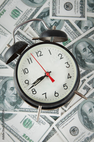 money, time, business, dollar, watch, banking, deposit, paper, background, success, concept, currency, investment, 100, white, gold, market, signs, clock, finance, wealth, cash, savings, isolated, blue, colours, old, object, retro, dollar
