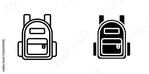 Backpack vectors icons set in filled and strokes on white background