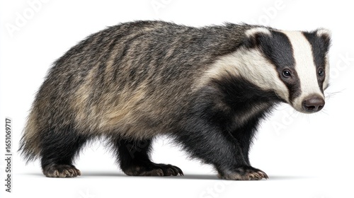 badger, mammal, animal, wildlife, nature, stripes, black, white, face, head, fur, cute, isolated, walking, background, carnivore, creature, european, zoology, looking, posing, species, biology, outdoors, wild, ground, paw, closeup, portrait, forest, timberland, furry, fauna, natural, environment, critter, terrestrial, stripes, marking, pattern, sideview, gaze, stroll