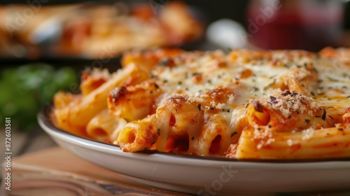 pasta, baked, cheese, tomatoes, sauce, food, dinner, italian, cookery, comfort, delicious, culinary, meal, epicure, gastronomy, lunch, eatery, receipe, homemade, mozzarella, parmesan, penne, rigatoni, macaroni, plate, white, brown, dish, closeup, photo, macro