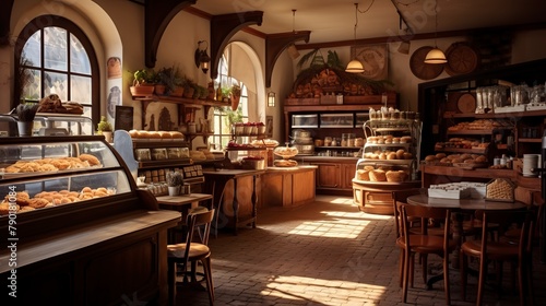Bakery Interior and Ambiance: The warm, inviting atmosphere of a bakery.