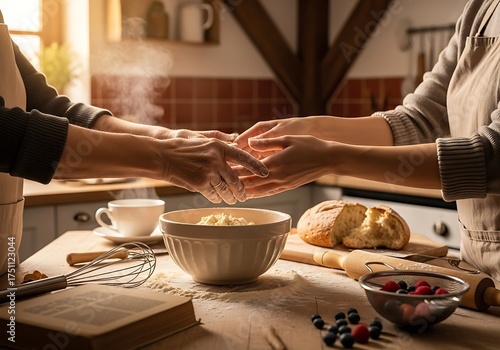 hand, baking, flour, kitchen, homemade, bread, cooking, collaboration, domestic, preparing