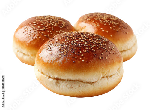 Baking fresh sesame seed buns in a kitchen food preparation culinary environment view. Isolated on transparent background, png.