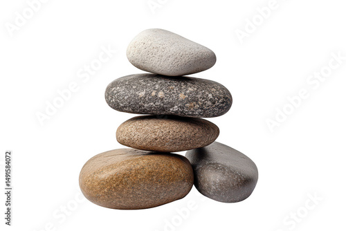 Balanced natural smooth stones stacked in a zen-like arrangement isolated on a transparent background