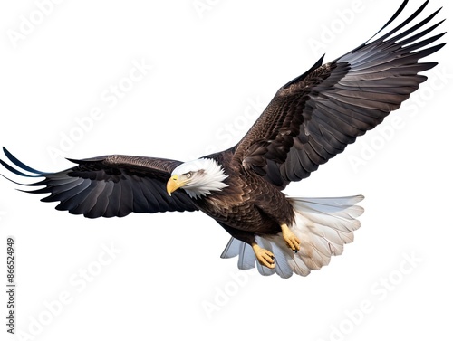 Bald Eagle Isolated on White Background, Adult Flying Eagle Isolated on White Background