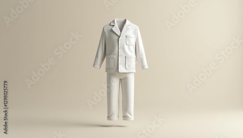 Bamboo Pajamas. White formal boys suit hanging, stylish elegant outfit