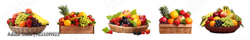 apple, arrangement, banana, basket, blueberry, burning, collection, container, cut-out, design element, fire, food, food and drink, freshness, fruit, grape, heat, many-coloured, orange, pineapple, plant, red, set, side by side, transparent, variation, yellow