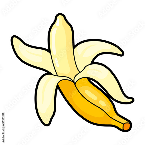 Banana half peeled cartoon icon. Tropical fruit. Summer sneak. Sweet ingredient for drinks.