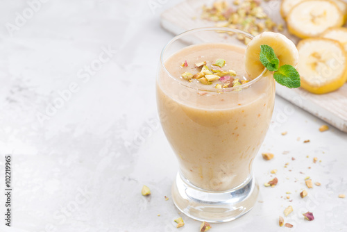 banana milkshake in a glass on white background