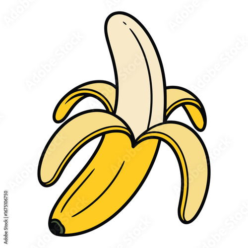 Banana Vector Illustration, Cartoon Peeled Fruit Icon, Fresh Tropical Food Clipart for Healthy Eating and Nutrition Design
