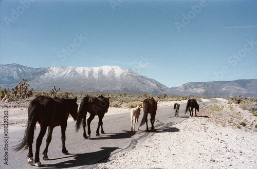 wildlife, wild horse, wild, walking, outdoors, nevada, nature, mother, horse, group, foal, desert, dam, animal
