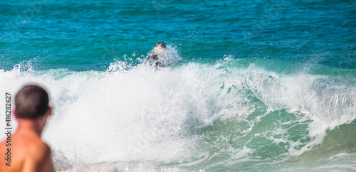 sunbather, wave, beach, ocean, sea, dunk, summer, fun, blue, sprinkle, swimming, nature, coast, vacation