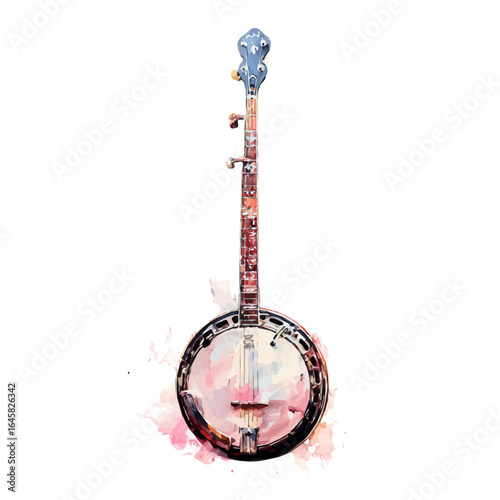 Banjo in watercolor style, vector illustration, isolated on white background.