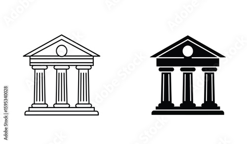bank, courthouse, icon, set, outline, solid, building, architecture, government, legal, justice, finance, loan, mortgage, investment, law, court, symbol, signs, vector, illustration, design, graphic, element, clip art, isolated, white background, column, ancient, greek, roman, classic, historical, landmark, institution, authority, structure, financial, banking, judgement, temple, museum, education, university, college, academy