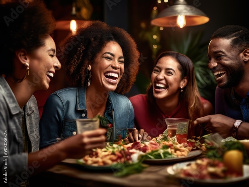 banking and commerce, Group enjoying pizza and drinks, laughing together