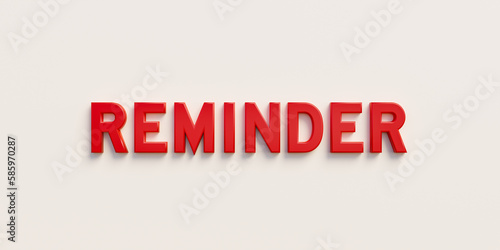 Banner, sign in red capital letters and the word reminder. Don’t forget, advice, memories, concentration, thorough and message. 3D illustration
