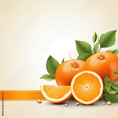 Banner with a Tangerine background and a Mandarin Orange with space for text. Creative food concept for ads, banners and greeting card