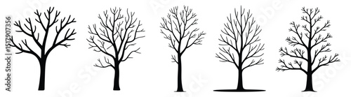 Bare black tree silhouettes in a winter forest landscape vector illustration