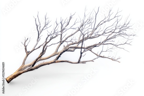 Bare Tree Branch Against White Background, Symbolizing Minimalism and Environmental Awareness for Sustainable Living Concepts : Generative AI
