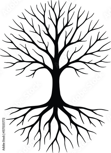 Bare Tree Silhouette Roots and Branches Illustration