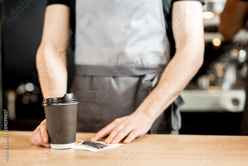 hot drink, counter, shop, cup, bar, cafes, eatery, table, drink, espresso, cafeteria, background, caffeine, beverage, hot, machine, retail, barista, cappuccino, cafes, modern, away, service, paper, hand, closeup, space, blank, take away