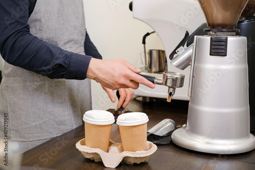 barista, mask, cafes, hot drink, indoor, drink, eatery, business, man, work, cafeteria, occupation, male, apron, cafes, making, machine, employee, job, small business, waiter, cappuccino, professional, service, real people, to go, take away, take-away, protect, safe, grinder, safety, virus, staff, disposable, shop, take-out