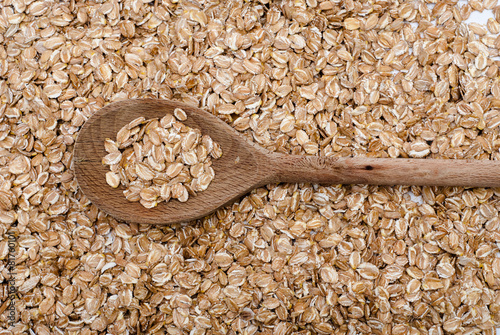 Barley flakes on wooden spoon