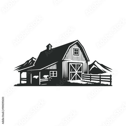 illustration, vector, barn, symbol, agriculture, farm, house, farmhouse, design, black-and-white, clip art, outline, design element, building exterior, rural scene, infographic, land, farm animal, farmer, concept, nature, signs, white background, architecture, agricultural machinery, cut-out, growth, seed, us, warehouse, working, cow, stable, village, wheat, windmill, computer graphic, harvesting, shed
