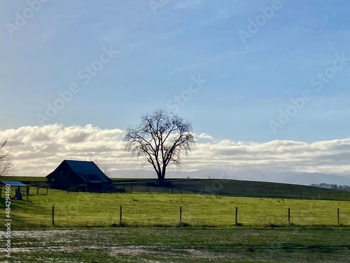 house, landscape, sky, grass, farm, nature, old, field, rural, countryside, barn, country, building, green, architecture, meadow, home, tree, blue, agriculture, tree, village, mountain, abandoned, peaceful, calm, cloud, winter, fence