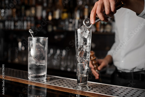 barkeeper, ice, cube, glasses, closeup, background, bar, alcohol, cocktail, cold, drink, elegance, refreshment, eatery, table, empty, dark, luxury, shot, wood, beverage, black, brown, counter, crystal, driving, life, liquid, liqueur, object, refreshing, scotch, single, still, surface, vintage, whiskey, wooden, gin, exclusive, preparation, alcoholic, banquet, beauty, spoon, white, shirt