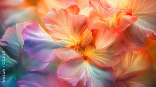 Barwna eksplozja kwiatów, których płatki rozchylają się niczym w harmonijnym tańcu pełnym kolorów i blasku, emanując świeżością i radością życia.