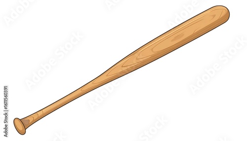 baseball, bat, wooden, sport, equipment, game, illustration, light, brown, simple, design, flat, object, sporty, tool, play, hit, stick, long, round, end, tan, graphic, isolated