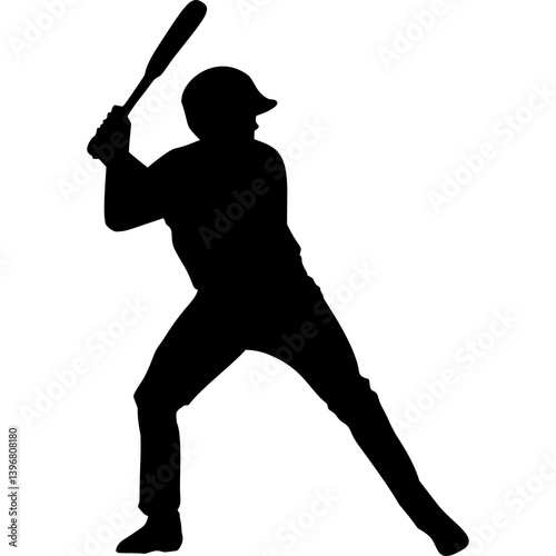 Baseball bat silhouette ready to swing. Sports action illustration for design projects, stickers, tattoos, posters, t-shirt and hat designs
