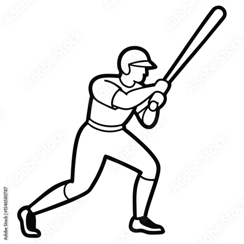 Baseball Batter Swinging Bat – Flat Style Vector baseball player line art