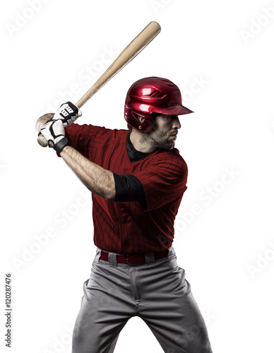 american culture, athlete, ball, baseball, baseball bat, baseball cap, batting, caucasian, competition, confidence, hitting, home run, isolated, man, people, playing, red, sport, sports equipment, strength, success, swinging, toughness, us, winning