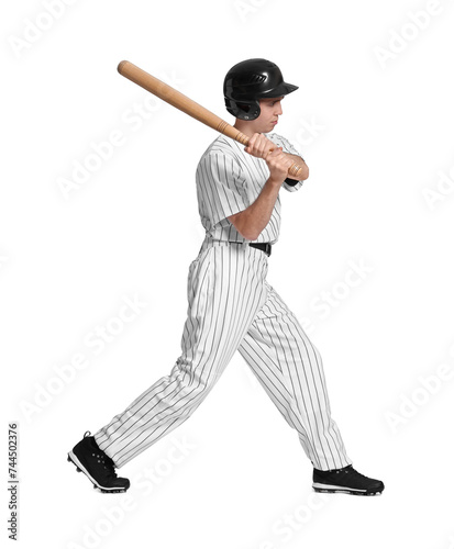 Baseball player with bat on white background