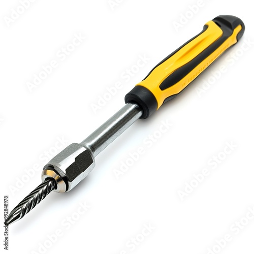 screwdriver, tool, isolated, metal, work, screw, white, steel, construction, equipment, handle, repair, tool, object, yellow, driver, instrument, plastic, industry, metallic, black, fix, carpenter's shop, home, workshop