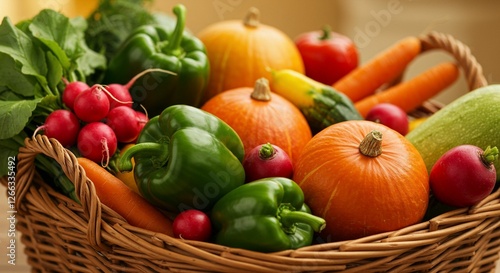 pumpkin, radish, carrot, courgette, squash, tomatoes, wicker basket, healthy eating, natural light, healthy lifestyle
