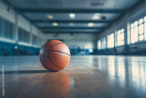 Basketball ball over floor in the gym in motion