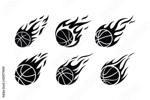 Basketball fire flame silhouette, with fire flame vector graphic, Ideal for stickers, decals, sport logo design and any kind of decoration