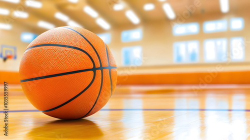 Basketball on Court: Sun-drenched orange court with a basketball resting in the sun. Ready for the next game.