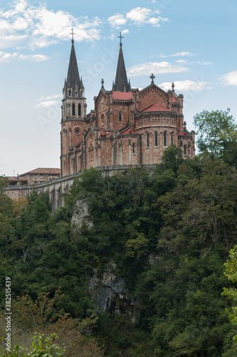 basilica, spain, religion, outdoors, old, landmark, church, christian, catholic, castle, building, architecture, asturias, tower