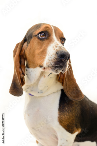 dog, beagle, animal, pet, puppy, hound, cute, white, basset, canino, basset hound, portrait, ear, brown, sitting, mammal, breed, studio, young, looking, domestic, isolated, adorable, doggy, pet, costume