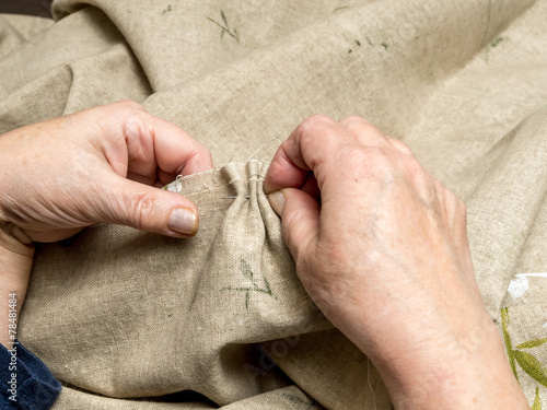 alter, alteration, baste, basting, border, fabric, female, fiber, handcraft, hand, linen, mature, needlecraft, old, older, people, senior, stitch, stitching, strand, tack, tacking, tailor, tailoring, textile, trim, trimming, woman