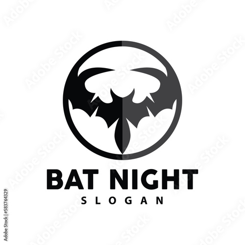 Bat Logo, Hanging Bat Animal Vector, Hallowen Night Animal Icon Design