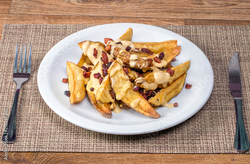 potato, potato chips, fries, bacon, pig, cheese, tidbit, ales, bar, fat, boat, rustic, crunchy