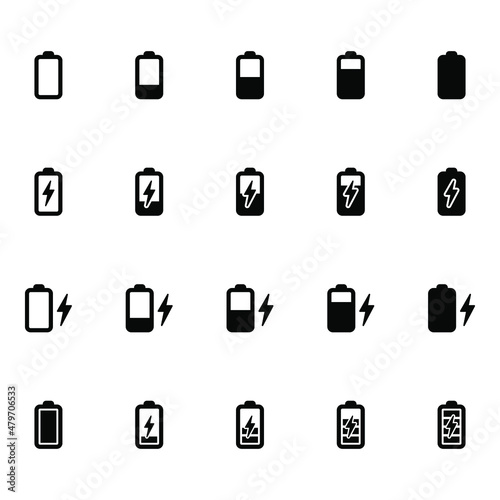 icon, battery, power, charge, energy, level, vector, set, symbol, signs