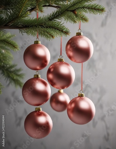 Bauble-shaped ornaments hanging from a branch, colorful, ornaments, branch