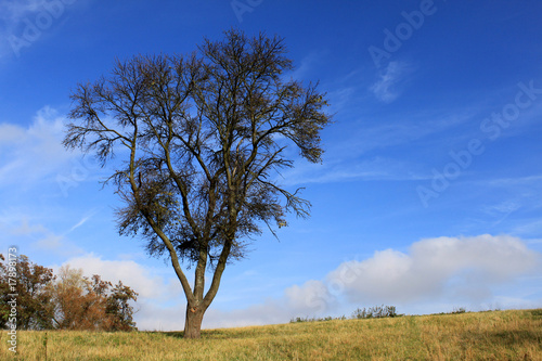 tree, leafless, autumn, winter, heaven, blue, background, meadow, straight, cloud, cloud, cloudy sky, lonely, alone, any