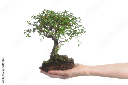 tree, bonsai, hand, background, white, environment, breeding, garden, mini, nature, japanese
